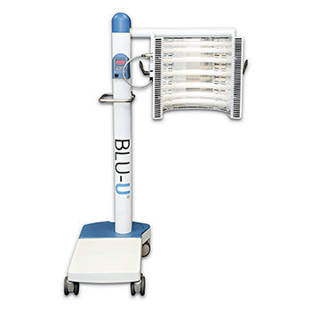 - Treatment of Acne – The acne affected portions of the skin (typically the face) are exposed to blue light under the blue light illuminator (BLU-U). The blue light destroys the P. acnes bacteria on the skin. This treatment is scheduled in approximately 20 minute sessions once or twice per week for approximately 5 weeks.